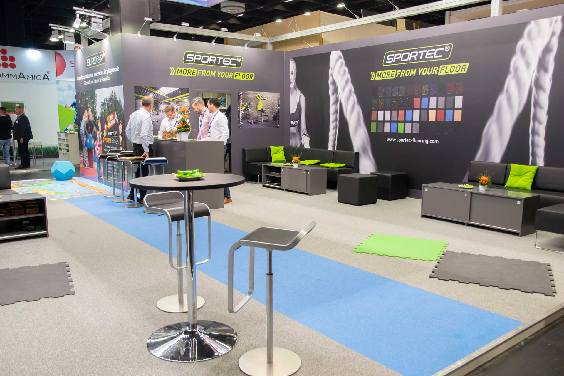 to avoid falling or injury to exhibitors or visitors (anti-slip property R10 (DIN 51130) and DS-Label)