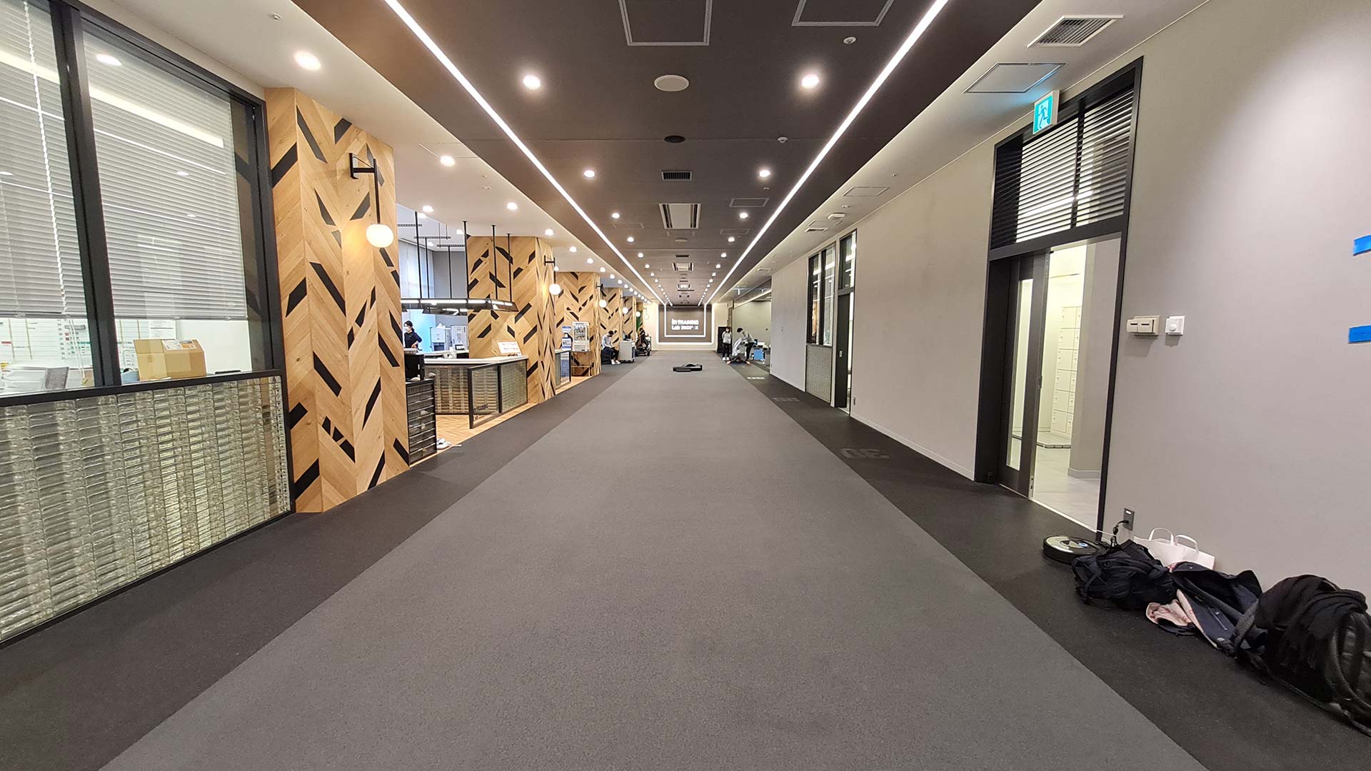гумената настилка осигурява еластичност и предпазва фугите, ергономична за клиенти и работници
