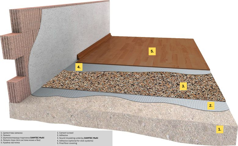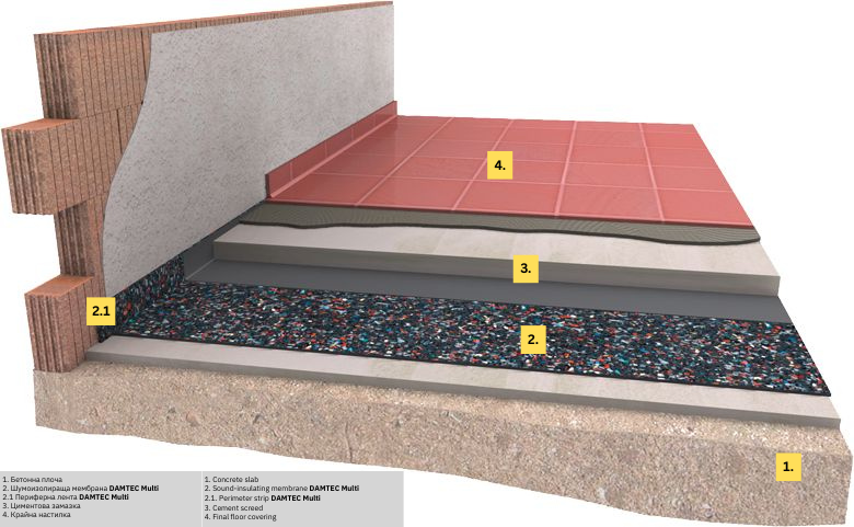 Damtec Multi sound-insulating layer for installation under cement screed: