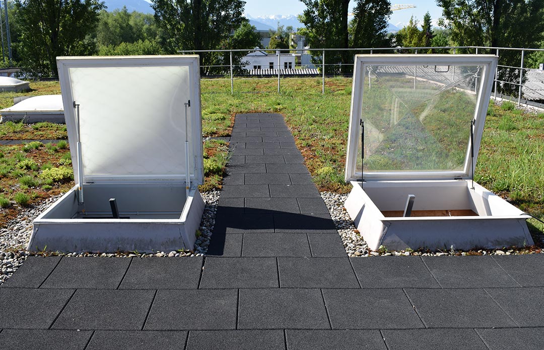 Creation of differently marked maintenance ways (4 standard colours for 1-4 trades such as grey = ventilation technology, green = horticulturist, red = maintenance photovoltaic systems etc.)